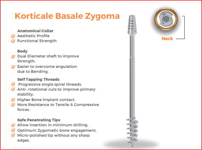 Allow insertion in minimum drilling. Optimum Zygomatic bone engagement. Micro-polished tip without any sharp edges